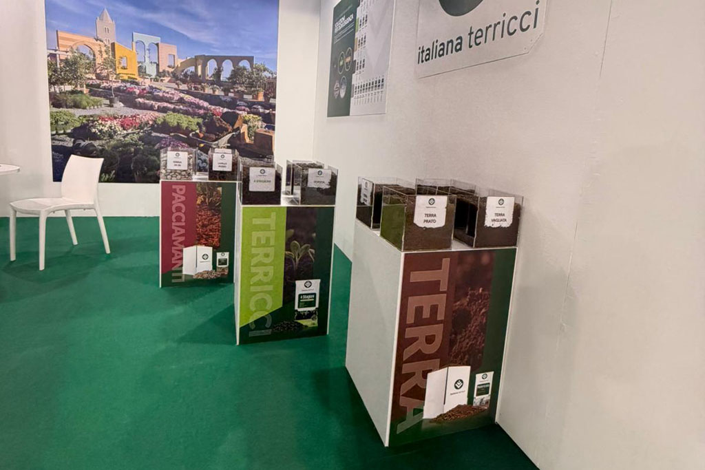 Durante i tre giorni di manifestazione, lo stand Italiana Terricci ha offerto ai visitatori uno spaccato concreto sulle tecniche di produzione di terre e terricci adottate nello stabilimento aziendale, insieme a una panoramica dedicata al laboratorio di ricerca e sviluppo, cuore dell’innovazione del marchio.